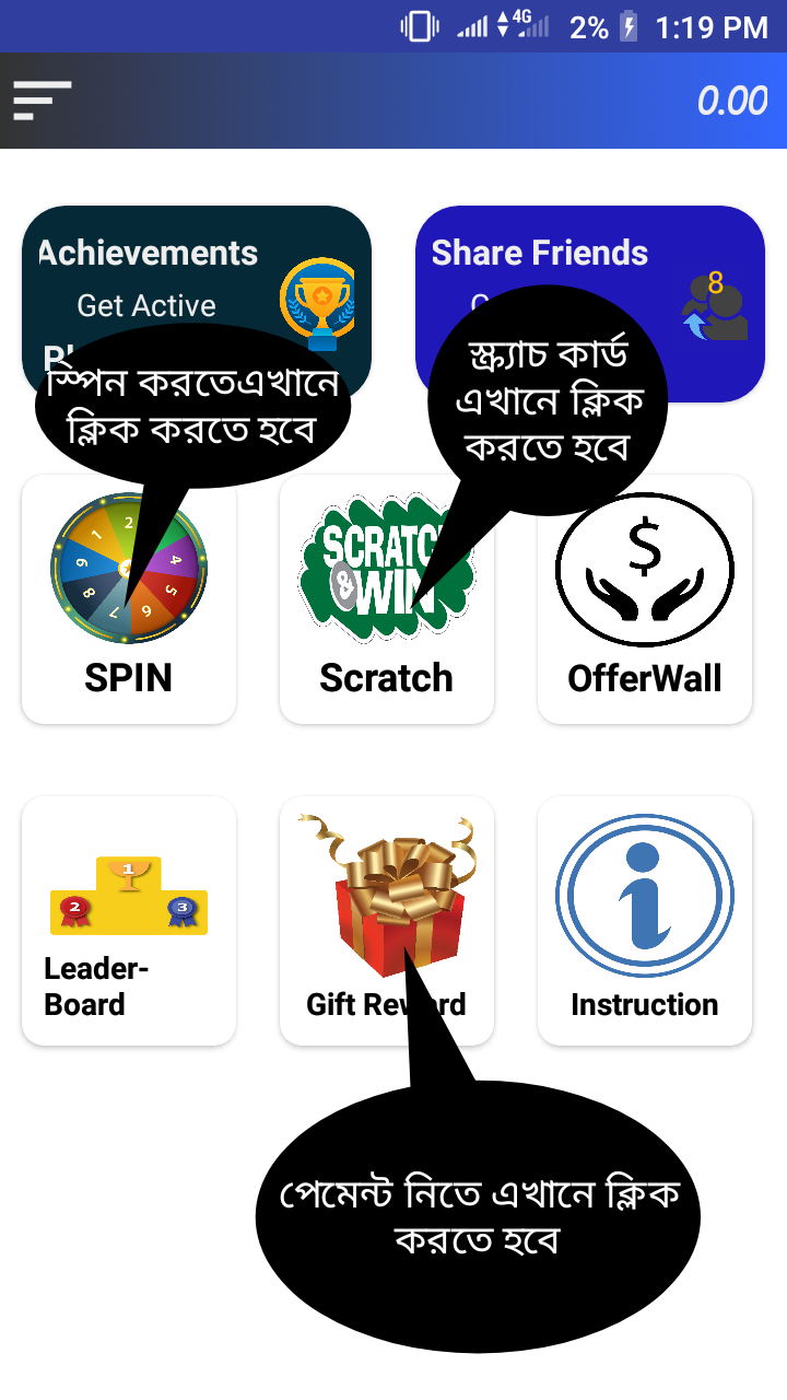 আমরা স্পিন করে এবং স্ক্র্যাচকার্ড ঘষে ইনকাম করতে পারি।
